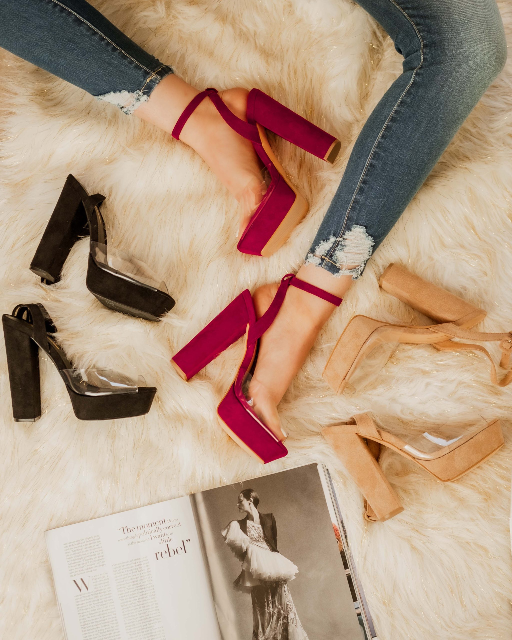 Para Exclusividades, elegimos una paleta de tonos cálidos y elementos femeninos como flores y textiles suaves para crear una atmósfera acogedora y chic. La modelo de pies fue clave para centrar la atención en los zapatos, mostrando sus detalles de diseño, desde las texturas hasta el ajuste en el pie. Este enfoque permite a la audiencia visualizar cómo los zapatos se ven en el día a día, manteniendo un aire de glamour y sofisticación en cada imagen.