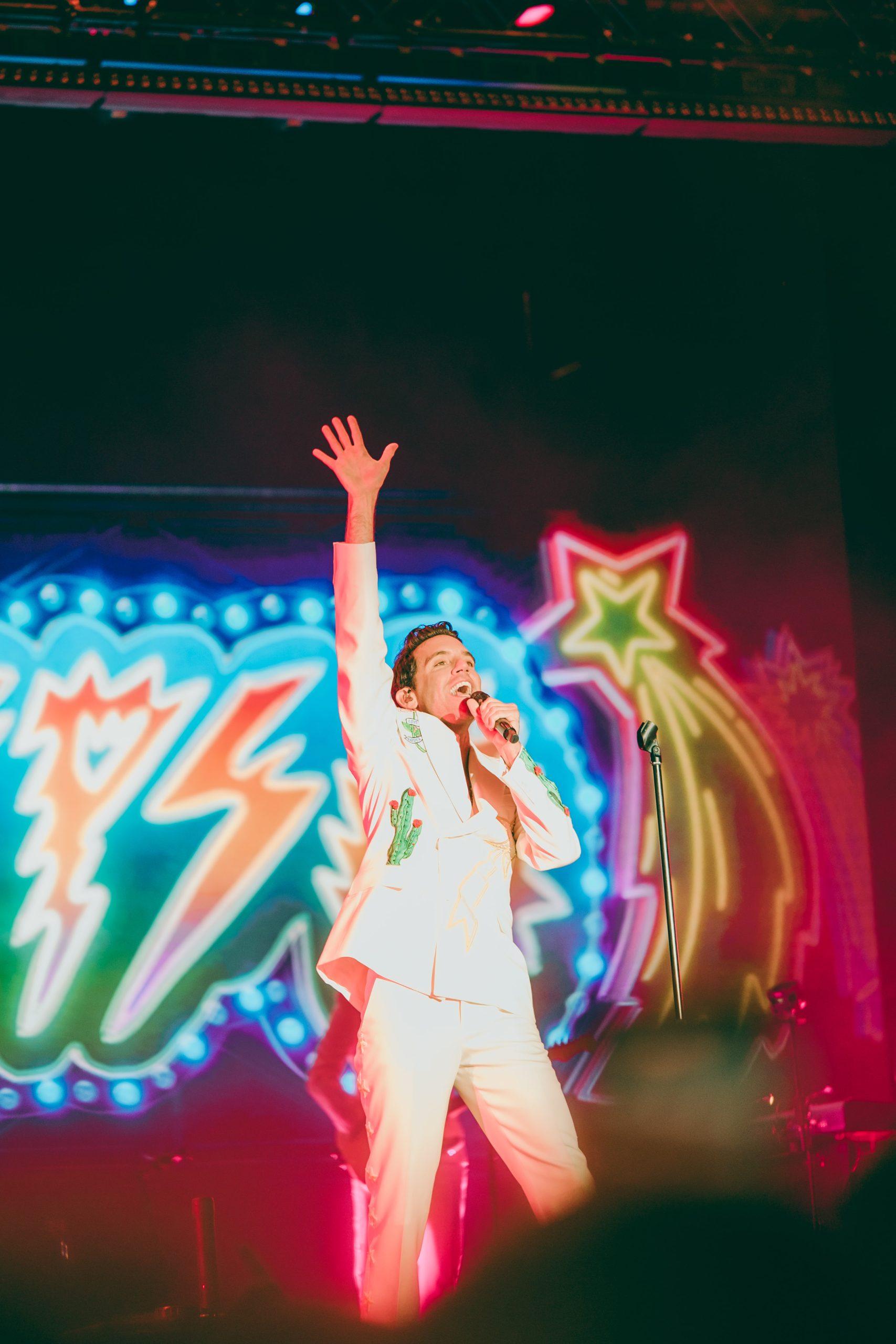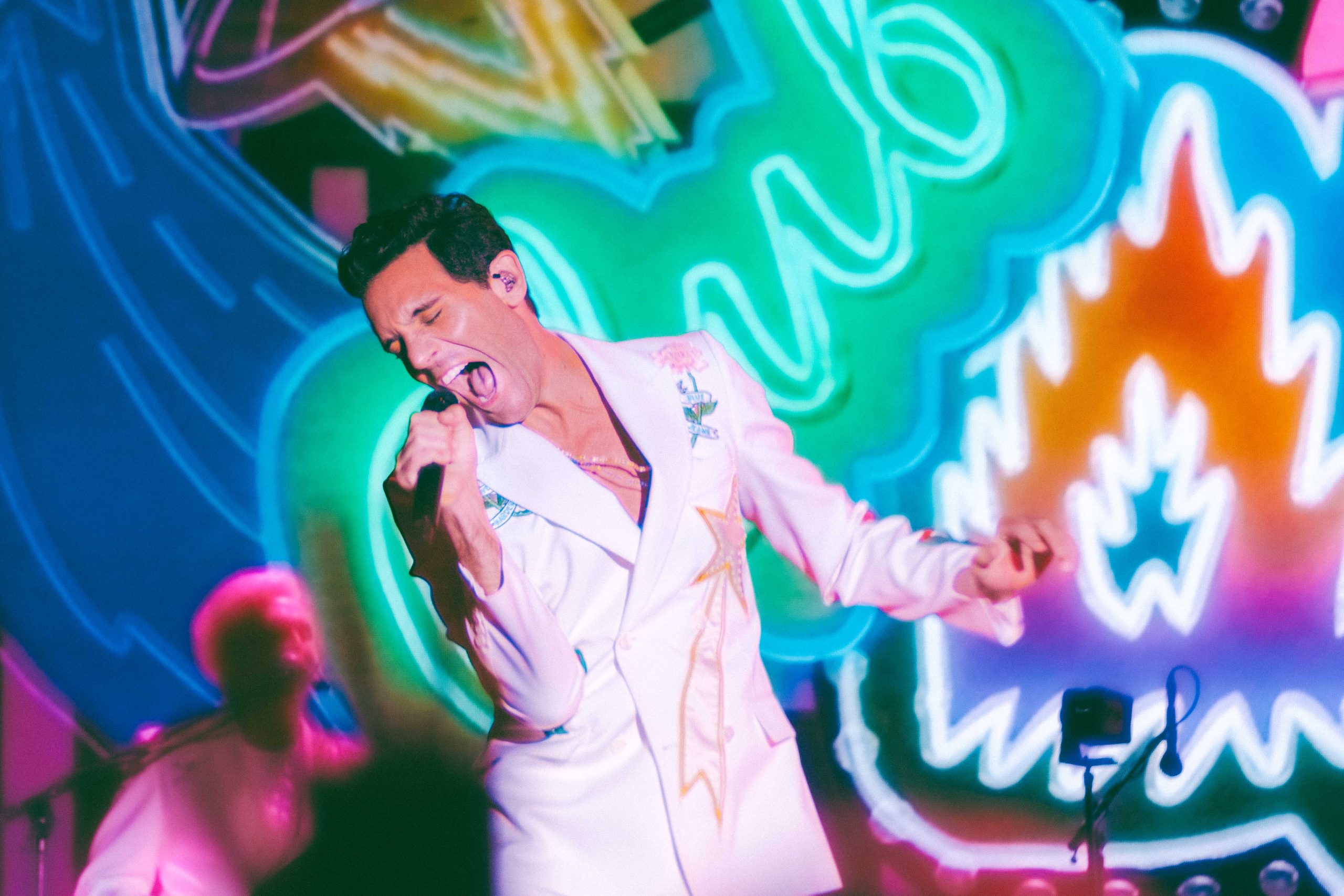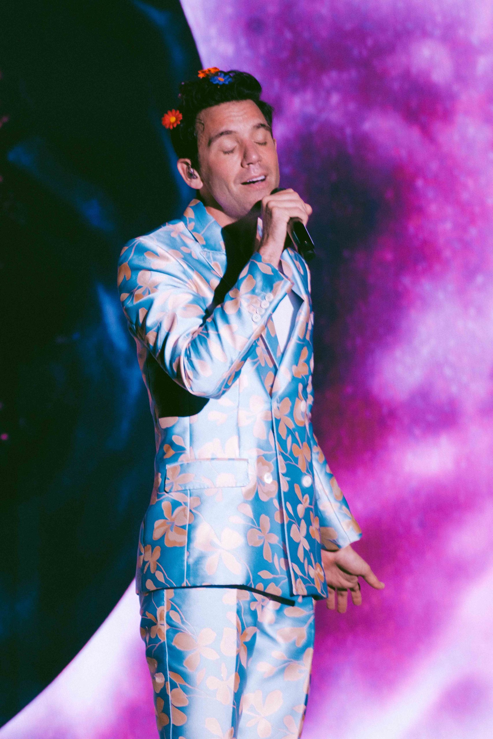Para darle a la cobertura un estilo visual distintivo, empleamos un estilo cinematográfico que enfatiza los colores intensos y los contrastes profundos, juego de luces y grano en la imagen, una elección ideal para el estilo de Mika, lleno de personalidad y carisma. La iluminación en vivo de conciertos puede ser desafiante algunas veces, pero logramos aprovechar los cambios de luces y fondos para obtener una serie de fotografías donde cada toma destaca por su composición visual y por resaltar la esencia del espectáculo.