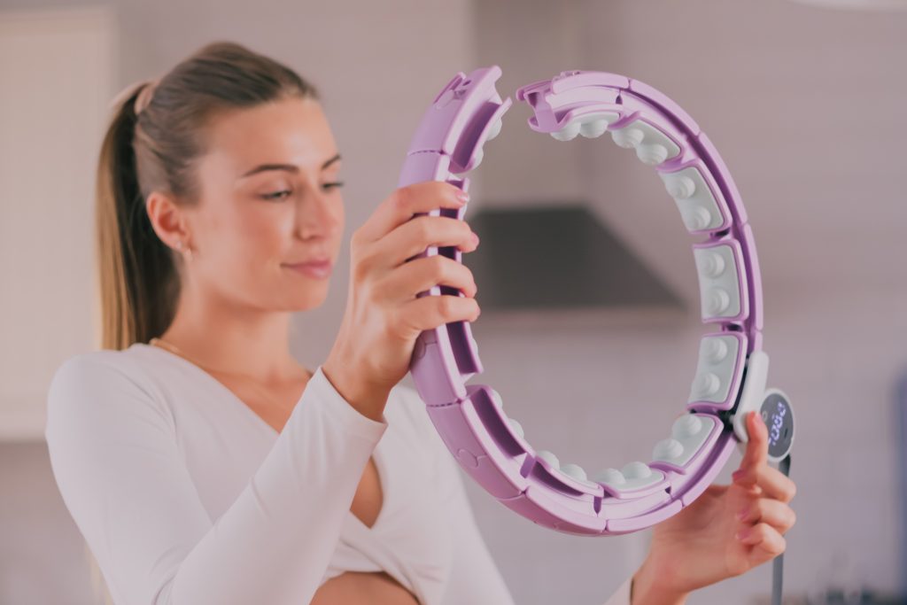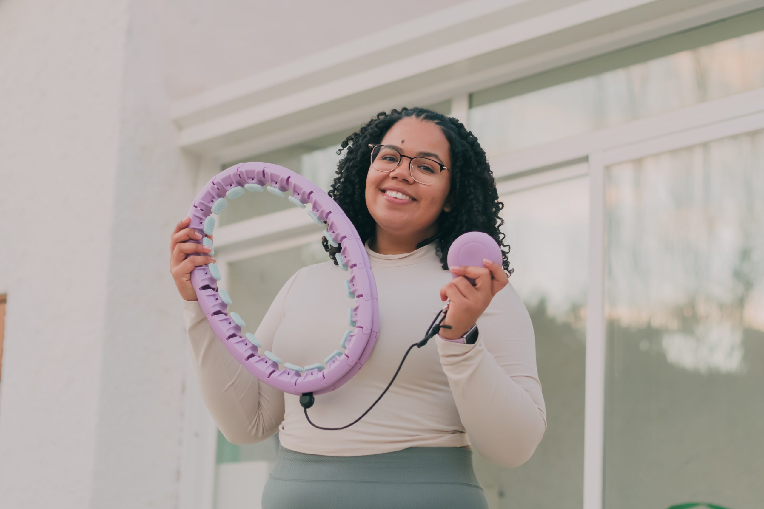 Para esta producción audiovisual utilizamos equipos de iluminación que simularan un ambiente natural, y escenarios sencillos para enfatizar el diseño del producto, manteniendo un estilo visual limpio y elegante que resonara con la estética de la marca. En el caso de los videos, incorporamos tomas dinámicas que resaltaban el movimiento y el uso práctico de los hula hoops, y las mancuernas, creando contenido que fuera atractivo y motivador.